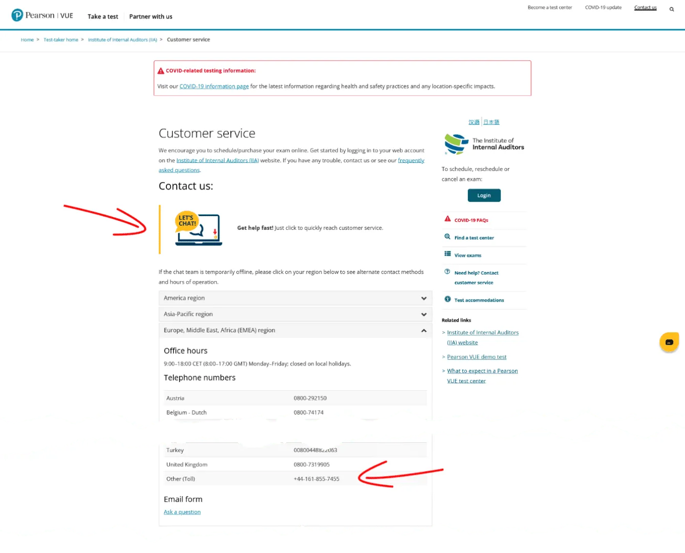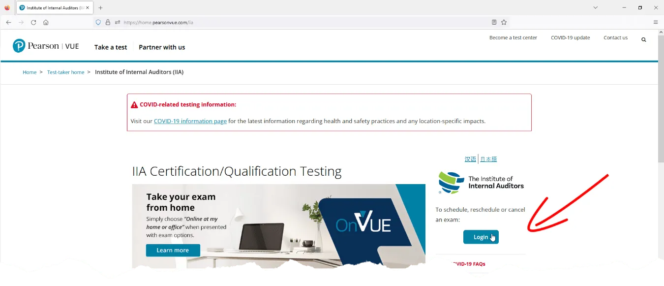 Rejestracja i zakup egzaminów możliwy jest na stronie https://home.pearsonvue.com/. Na głównej stronie, w pasku wyszukiwań należy wpisać nazwę organizacji certyfikującej np. IIA (the Institute of Internal Auditors), PMI, GMAT, (ISC)2, CAIA etc.